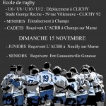 PROGRAMME WEEK-END 14 ET 15 NOVEMBRE Posted on 13 novembre 201514 novembre 2015 by Christophe Sammartin L'ensemble des rencontres sportives est annulé pour des raisons de sécurité. LIRE LA SUITE