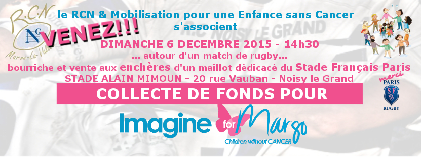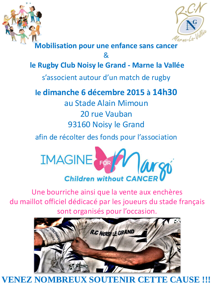 le RCN a été approché par une association "Mobilisation pour une enfance sans cancer" et a décidé de s'y associé dans l'objectif de collecter des fonds autour d'un événement rugby "un match"... Collecte de fonds au profit d'Imagine for Margo, qui lutte activement contre le cancer de l'Enfant http://imagineformargo.org/