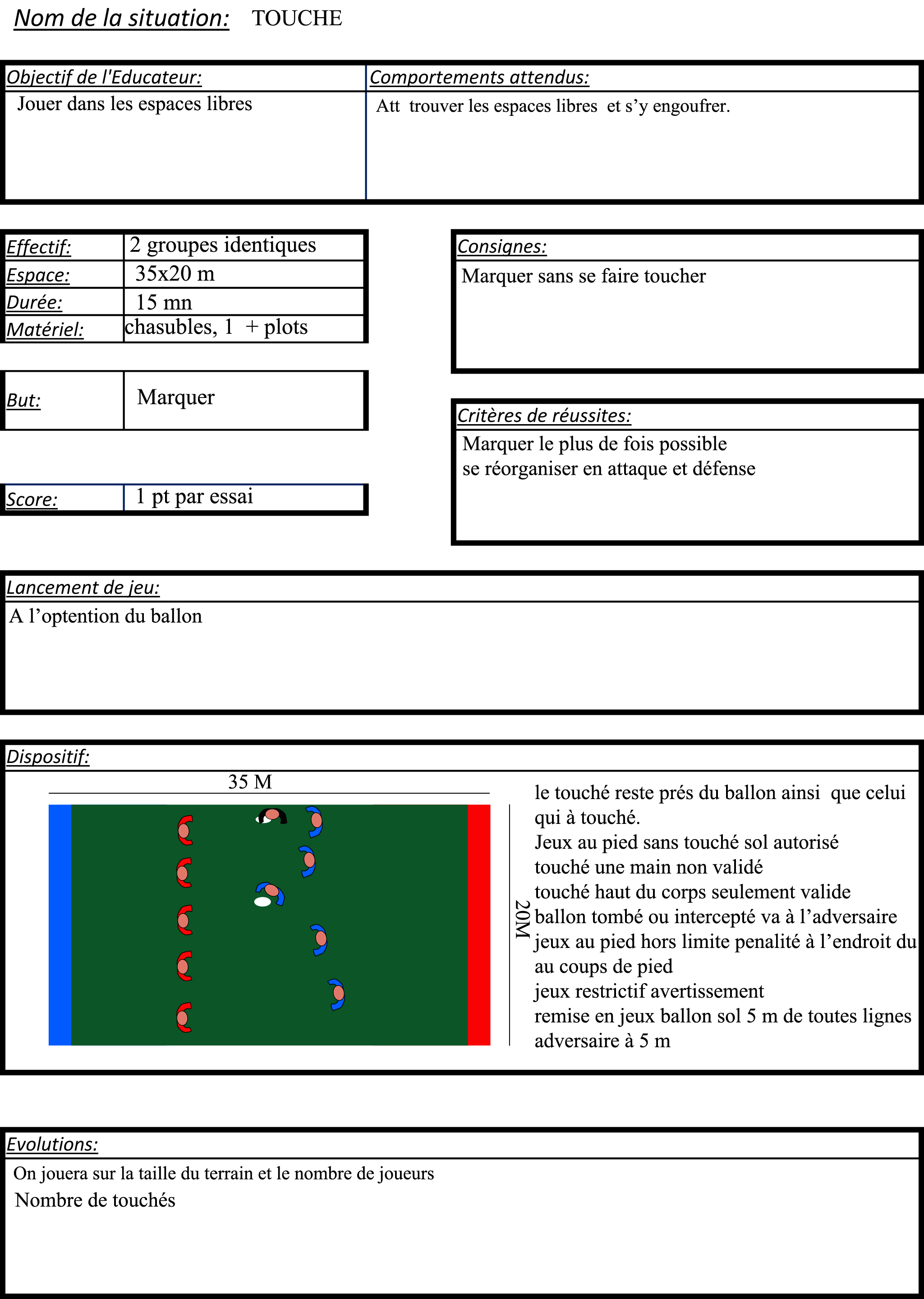 Le coin de l’éducateur RÈGLEMENT SPORTIF EDR PRATIQUE du RUGBY en EDR SAISON 2019-2020 LUTINS U6 Règles du jeu M6 ans Plan de formation U6 MINI POUSSINS U8 Règles du jeu M8 ans Touché 2 secondes M8 ans-Jeu au Contact Mêlée éducative en M8 Le plaquage Règle EDR Plan de formation u8 POUSSINS U10 Règles du jeu M10 ans à X M10 ans-TOUCHER 2 secondes M10 ans-Jouer au contact Mêlée éducative en M10 Le plaquage Règle EDR Plan de formation u10 BENJAMINS U12 Règles du jeu M12 ans à X M12 ans-TOUCHER 2 secondes M12 ans-Jouer au contact Mêlée éducative M12 Le plaquage Règle EDR Plan de formation U12 MINIMES U14 14 ans JEU à XV M14 ans-TOUCHER 2 secondes M14 ans jeu à X M14 ans-Jouer au contact Le plaquage Règle EDR L'arbitrage à l'EDR Septembre 2019/2020 Plan de formation U14 SÉCURITÉ RUGBY SÉCURITÉ CIRCUIT PRÉPARATOIRE PLAQUAGE EXERCICES SITUATIONS RUGBY SÉANCE ATELIER N°1 (septembre-octobre) U8,U10,U12 SÉANCE ATELIER N°2 (école de rugby, novembre-décembre) U8,U10,U12 SÉANCE ATELIER N°3 (ÉCOLE DE RUGBY, JANVIER-FÉVRIER) U8,U10,U12 SÉANCE ATELIER N°4 (école de rugby, mars-avril) U8,U10,U12 CYCLE 1 U6 et U8 (5 SÉANCES) CYCLE 2 U6 et U8 (8 séances) CYCLE 3 M6 - M8 - (7 séances) Situation circulation offensive Situation jeu debout Situation rucks + replacement Situation duels Situation plaquages FORMATION ÉDUCATEURS PLAN DE FORMATION DU JOUEUR PFJ_tome1 PFJ_tome1 BIS PFJ_tome2 EDR PFJ_tome3 JEUX à xv 13 à 17ans VIDEOS 1 contre 1 1+1 CONTRE 1 ARRACHAGE DUEL ATTAQUE DU CHÂTEAU JEU DU BERET ÉCHAUFFEMENT MARQUE ÉCHAUFFEMENT SOL PASSE RECEPTION L’ENTONNOIR L'EPERVIER JEU LA CIBLE JAQUES A DIT LA PASSE ARRIÈRE LA PASSE PARCOURS MOTRICITÉ JEU DE LA TORTUE APPRENTISSAGE PLAQUAGE VOLEURS D’ŒUF 1 VOLEUR D’ŒUF 2 REPÉRAGE MANIPULATION PASSE APPRENTISSAGE PASSE APPRENTISSAGE PASSE 2 TOUCHÈ ÉVEIL POUSSÉE PLACAGE POURSUITE LE PLACAGE OFFENSIF CONTINUITÉ DE JEU REPLACEMENT DÉFENSIF1 REPLACEMENT DÉFENSIF 2 REPLACEMENT DÉFENSIF 3 REPLACEMENT DÉFENSIVE 4 REPLACEMENT DÉFENSIVE 5 VARIANTE REPLA DÉF 5 RETARD DEFENSE TECHNIQUE PASSE RELAIS LE MORPION 1+1RETARDE CONTRE1 TECH TRANSFO DU JEU PLACEMENT ATTAQUE DÉFENSE Soutien Protection Avancer soutien coopération