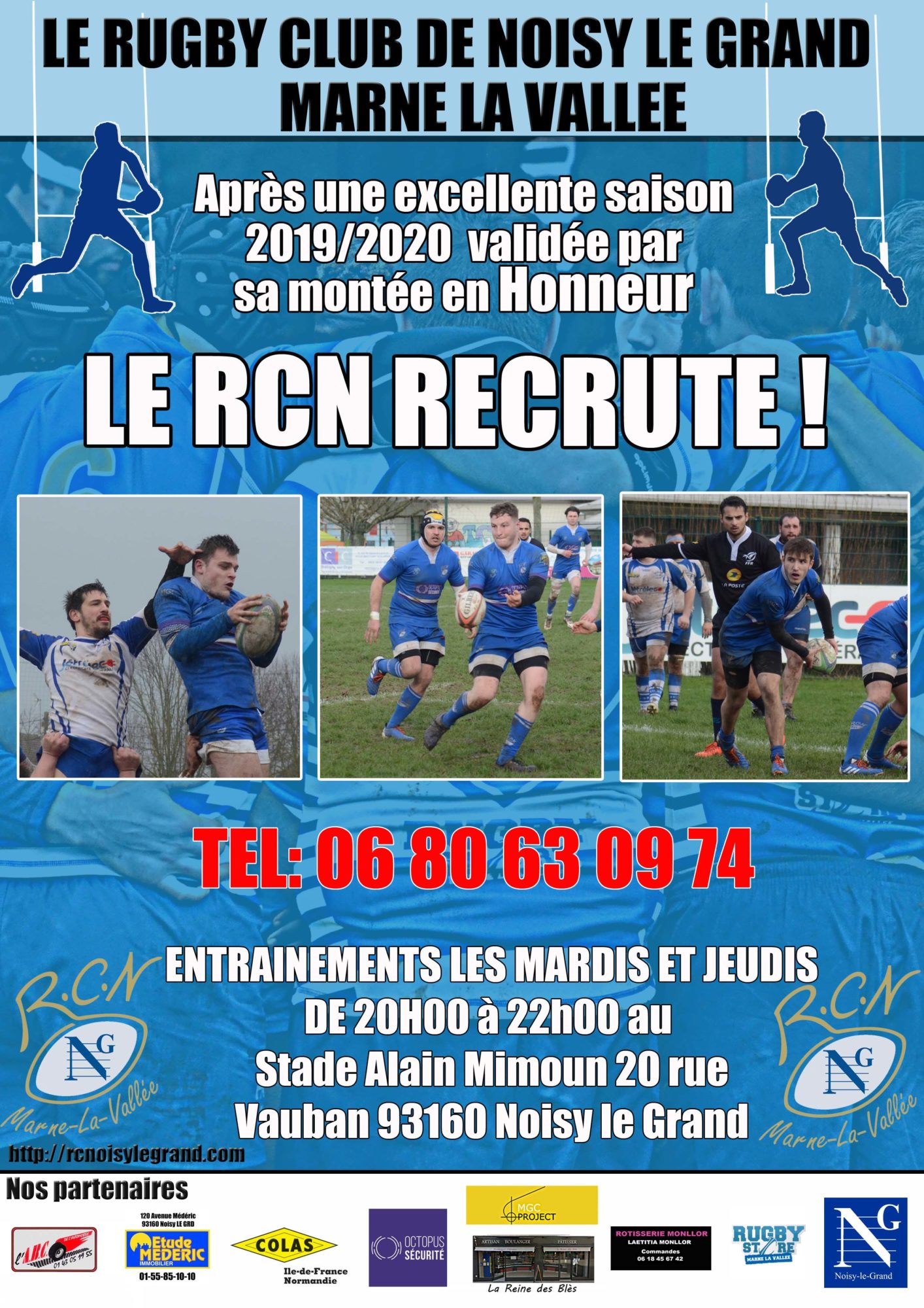 Le RUGBY CLUB NOISY LE GRAND prépare sa saison 2020-2021... futurs joueurs niveau Honneur :