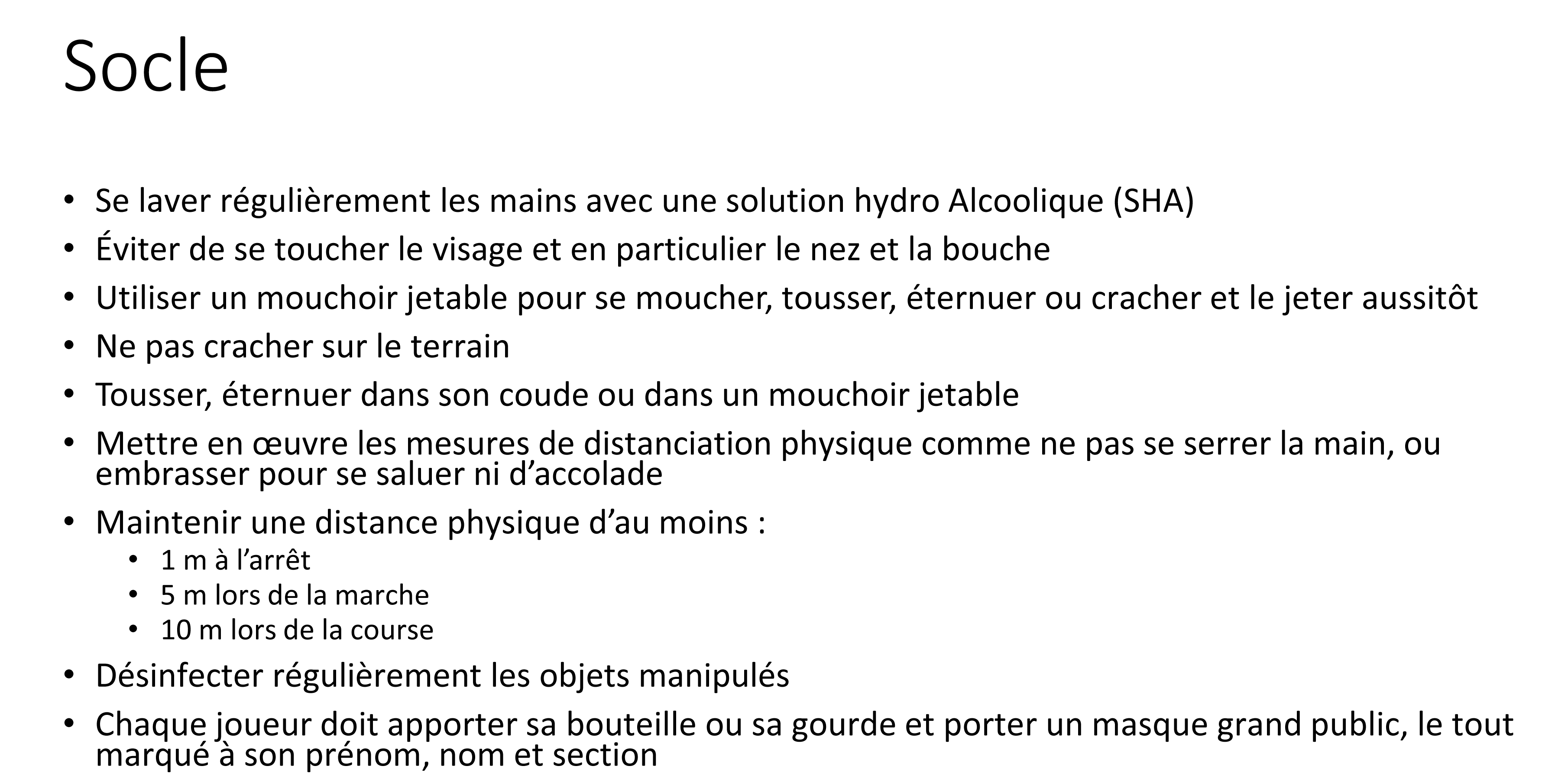 Ce protocole est à lire attentivement par tous les licenciés qui se présenteront aux entraînements.